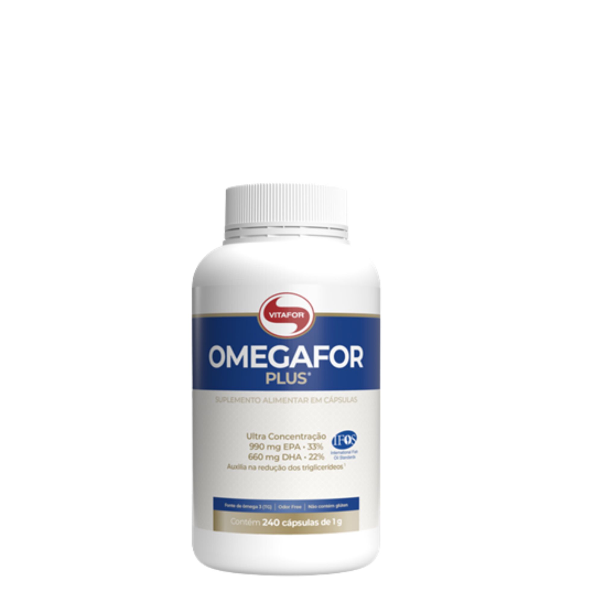 ÔMEGAFOR PLUS® é um suplemento alimentar de óleo de peixe em cápsulas. Possui alta concentração de seus derivados, ácido eicosapentaenóico (EPA) – 990mg e ácido docosahexaenóico (DHA) – 660mg, extraído através de processo de alta tecnologia onde se isenta de impurezas e metais pesados, certificado pelo Programa Internacional de Padrões de Óleo de Peixe (IFOS ™).